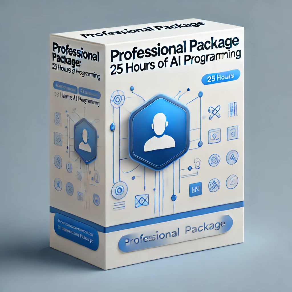 Don’t miss this opportunity to create advanced, customized AI solutions—at an exceptional value. Choose the Professional Package: 25 Hours of AI Programming and unlock the potential of artificial intelligence for your projects.
